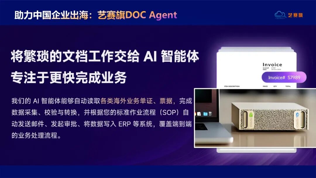 2. 文档识别提取智能体(DOC Agent)。 汽车产业供应链中充斥着大量单据:海外贸易发票、报关单、物流运单、供应商对账单、质检报告……这些单据格式多样、语言复杂,传统人工处理耗时费力。艺赛旗文档识别提取智能体可自动识别数十种业务单证,精准提取关键字段,并根据业务规则自动写入系统、发起审批或触发后续流程,真正实现“文档采集—智能识别—数据提取—业务执行”的端到端自动化。
