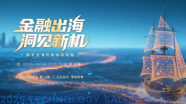 近期,信也科技布道师团队顺利开展了第十三期技术沙龙活动。本次活动以“金融出海,洞见新机”为主题,汇聚了来自阿里云、华为云及信也科技的技术专家,共同就金融出海的架构设计、安全合规与智能风控等关键议题进行研讨。线上线下参与者累计超过1800人,涵盖金融机构、科技公司与高校代表,现场互动积极,交流深入。