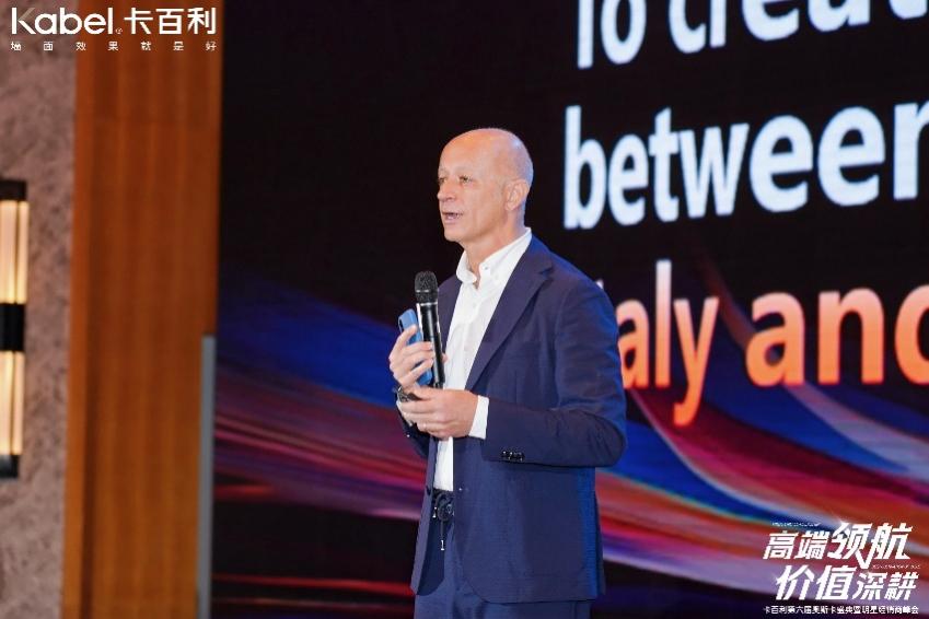 作为拥有纯正意大利艺术基因的品牌,卡百利的国际化步伐从未停歇,始终坚持“走出去”与“引进来”并重的战略理念。盛典现场,远道而来的意大利战略合作伙伴——COVEMA集团首席执行官Mr.GianniMartinetti发表了致辞。他表示,双方在美学与工艺上的融合已取得丰硕成果,未来将继续深化合作,不仅助力卡百利走向更广阔的国际舞台,更要将前沿的设计理念、经典的产品体系、纯正的意大利装修风格以及优雅的生活方式引入中国,全方位赋能卡百利在全球高端涂料市场中持续领航。