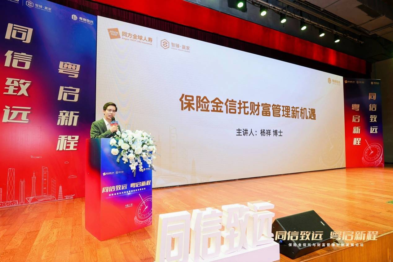 论坛特邀西南财经大学西部商学院保险金信托专家顾问杨祥博士作《保险金信托财富管理新机遇》主题演讲,内容兼具前瞻性与实操性,为现场嘉宾指明财富管理新方向。同时,粤财信托、浦发银行广州分行私人银行及富力颐安养老机构的领导分别就各自专业领域与保险金信托服务的融合发展开展主题演讲,分享跨界协同的实践经验。