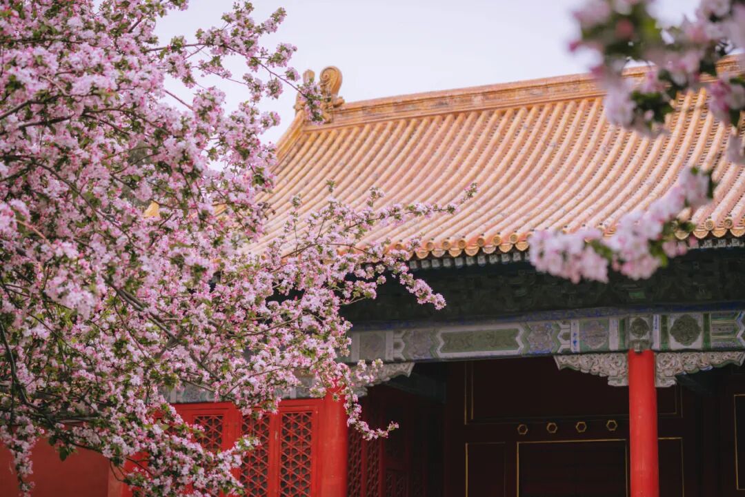 故宫博物院:文华殿前海棠含苞,武英殿旁杏花微雨,避开中轴线人流,小众赏花路线更有韵味。
