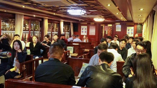 4月10日晚,来自全国各地的精英们共同开启了苏州护城河夜游。晚风轻拂,灯火阑珊,大家从相门码头登船,沿着苏州千年古运河缓缓前行。船行水上,现代灯光与古典景致交相辉映,一曲婉转悠扬的评弹,吴侬软语配上琵琶三弦,让大家沉醉其中。这条流淌了2500多年的护城河,见证了苏州的繁华与沉浮,也见证着东融人从五湖四海汇聚于此、同心同行的情谊。