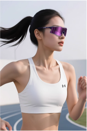 搭配软硅胶防滑鼻托 + 防滑镜腿,三点支撑贴合面部,出汗不打滑、跑步不晃动,不管是慢跑还是竞速,都能稳稳贴合,告别频繁调整的烦恼。