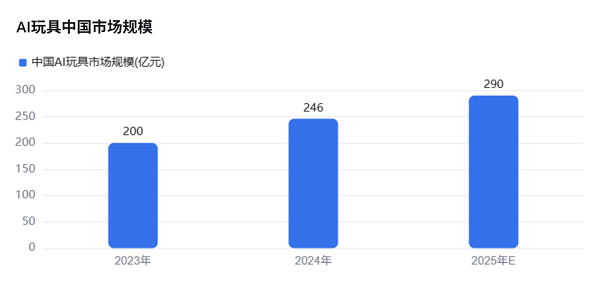 在国家“人工智能+”行动计划驱动下,中国AI玩具市场快速扩张。工信部数据显示,2024年市场规模约246亿元,预计2025年将达290亿至300亿元;全球市场更有望在2030年突破363.77亿美元。