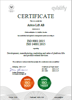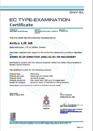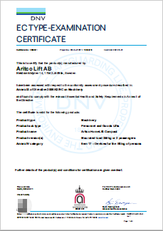 在欧洲,所有涉及人员升降的电梯设备,必须符合欧盟机械指令 2006/42/EC,并通过独立公告机构的严格审核。Aritco多款核心产品均获得 EC Type-Examination(CE 型式检验)证书,覆盖不同使用场景与产品系列。