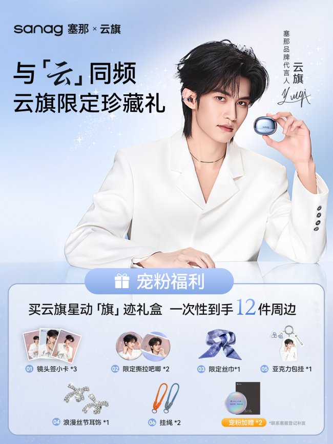 2026年4月15日,在喧嚣中追求内心共鸣的时刻,塞那正式宣布新生代人气演员云旗成为品牌代言人,并同步推出云旗专属「旗」迹礼盒。本次合作的主题“‘云’端共鸣,听见同频”,精准诠释了核心产品——塞那旗舰AI耳机S8S Ultra的内核:以行业首创的声学科技与全能AI助手,让每一位用户跨越嘈杂,听见与自己同频的心动声音。
