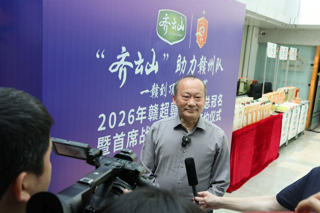 4月13日,2026赣超赣州赛区总冠名暨首席战略合作伙伴签约仪式圆满举行。江西齐云山食品股份有限公司以300万元正式成为赛事总冠名方,为赣州城市足球队2026赛季卫冕征程注入强劲本土力量。