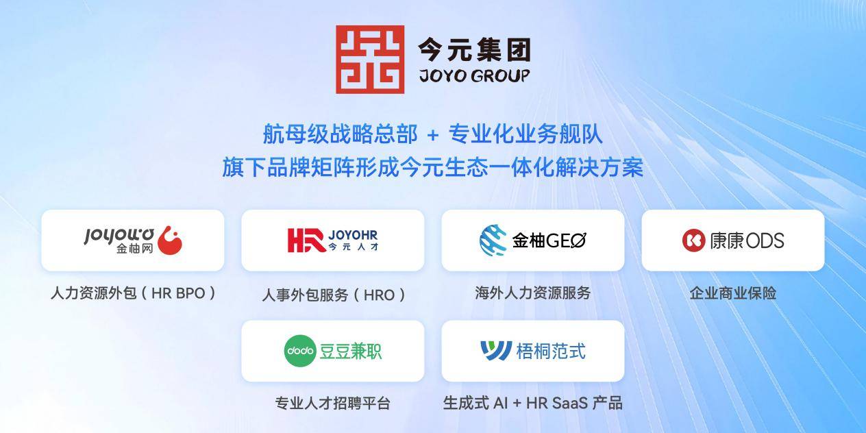 专业人力资源服务能力,是今元集团的立身之本与信任基石。面对复杂商业环境与企业多元化人才战略需求,今元构建覆盖全球人力资源全价值链的服务体系,打造“航母级战略总部+专业化业务舰队”协同模式。旗下金柚网、今元人才、金柚GEO、康康ODS、梧桐范式、豆豆兼职六大品牌协同发力,形成今元生态一体化解决方案,覆盖“技术赋能+服务落地+生态协同”的全纬度人力服务闭环,既实现流程数字化贯通,又以数据资产沉淀为企业人才战略提供科学决策支撑。