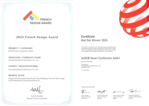 此外,itc保伦股份主导开展的“智能超高清视讯系统关键技术研究与应用”项目科技成果,通过鉴定达到国际先进水平;“智能高效云会务管理系统”项目科技成果达国内领先水平;《高复用AI智能交互会议一体机》成功入选工信部2025年度视听系统典型案例。并先后荣获“广东省名优高新技术产品”“广东省电子信息科学技术奖科技进步奖二等奖”“2025德国红点奖”“2024法国设计大奖”“2024视频会议知名品牌”“2024会议系统十大卓越品牌”“2024数字会议解决方案十大品牌”等多项行业荣誉称号,充分彰显了其在会议领域的技术优势和品牌影响力。