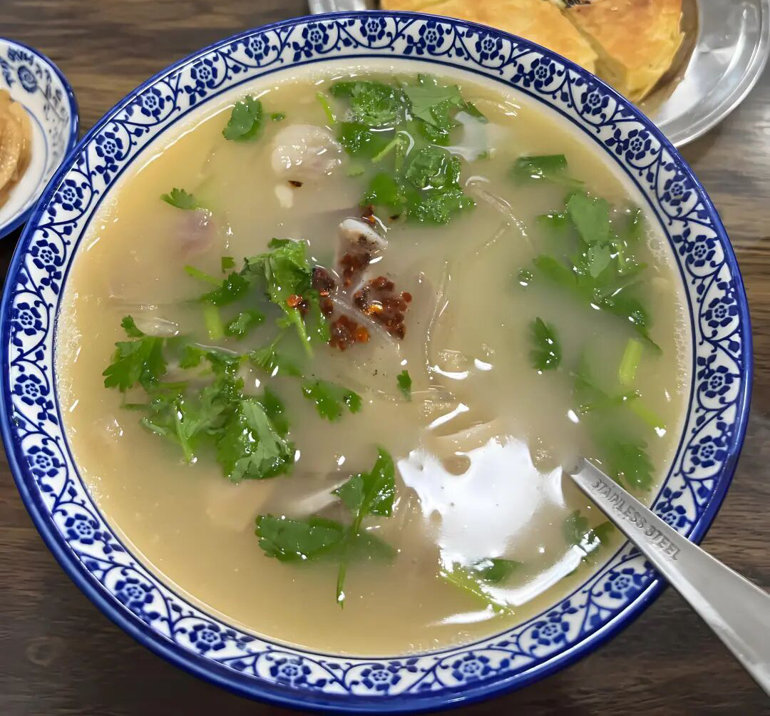 太原非遗早餐,具有健脾养胃、益气补虚等功效的养生药膳,相传由傅山先生创制。头脑选用羊肉、莲藕、山药、黄芪、良姜等八种食材和药材,又名“八珍汤”。清晨起来喝上一碗热乎乎的头脑,一整天都精神饱满。