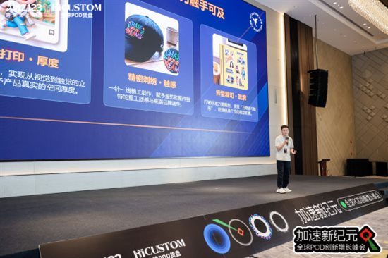 在流量日趋碎片化的今天,传统模式下盲目备货的风险正被无限放大。在开幕现场,指纹科技HiCUSTOM生态合作负责人何志聪以《产业大加速:AIX全球POD撬动出海生意新增长极》为题,直击行业痛点。