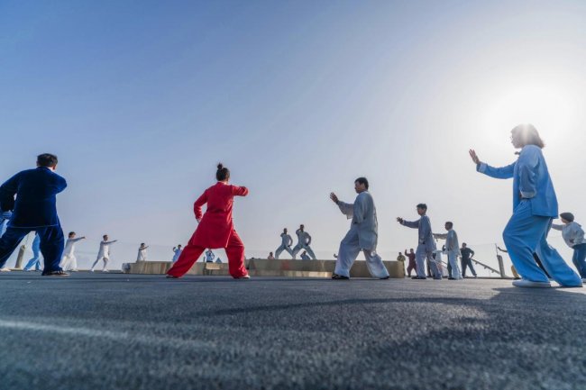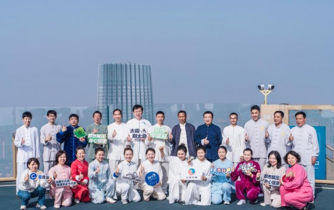 养生爱好者齐聚300米城市云端,以太极共迎晨光开启元气一天