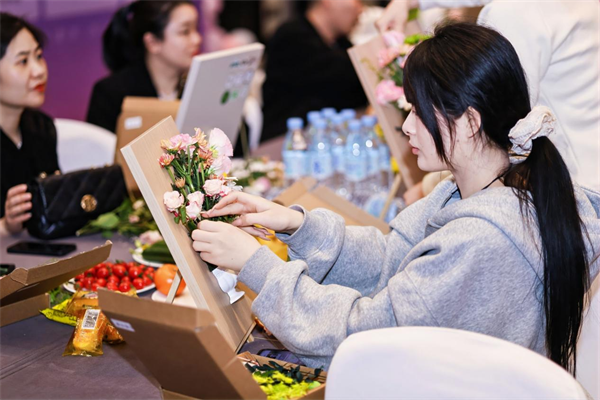 本次合肥发布会现场,顾家整家定制更创新地将环保 7 号|LSB-5 芯板作为花艺手工背板,借花艺沙龙沉浸式美学场景,以插花互动的轻柔形式软性植入产品认知,潜移默化强化用户对高品质板材的体验和心智记忆。