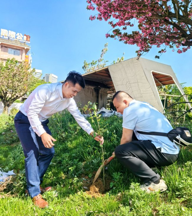 挥锹、填土、扶苗、浇水,简单而真诚的行动里,藏着对自然的敬畏,也藏着每一位伙伴的责任与热爱。
