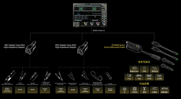 此外,配合专属探头适配器,设备亦可无缝兼容RIGOL既往多款探头产品,为更为广泛的工业互联及科技研发挑战提供全面、可信赖的分析保障。