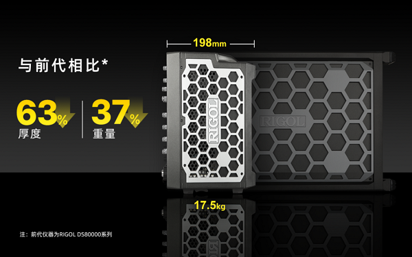 在外观与结构设计上,DHO50000系列高分辨率数字示波器实现了历史性突破。设备配备15.6英寸大触控屏,机身厚度仅198mm。相较于上一代产品,厚度缩减63%,重量减轻37%至17.5kg。在同级别宽带示波器中,DHO50000系列高分辨率数字示波器以轻薄的体量,承载了强悍的性能,重新定义了高端仪器的形态标准。