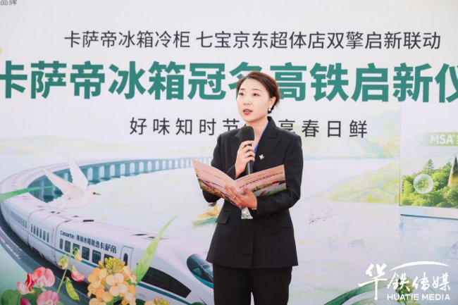上海海尔智家营销部长刘杨现场致辞表示,此次卡萨帝冰箱与中国高铁强强联手,是大国速度与高端品质的完美契合。飞驰的高铁将化作流动的品牌窗口,把卡萨帝冰箱极致储鲜、高端厨居的生活理念,传递至全国各个城市,走进更多家庭。