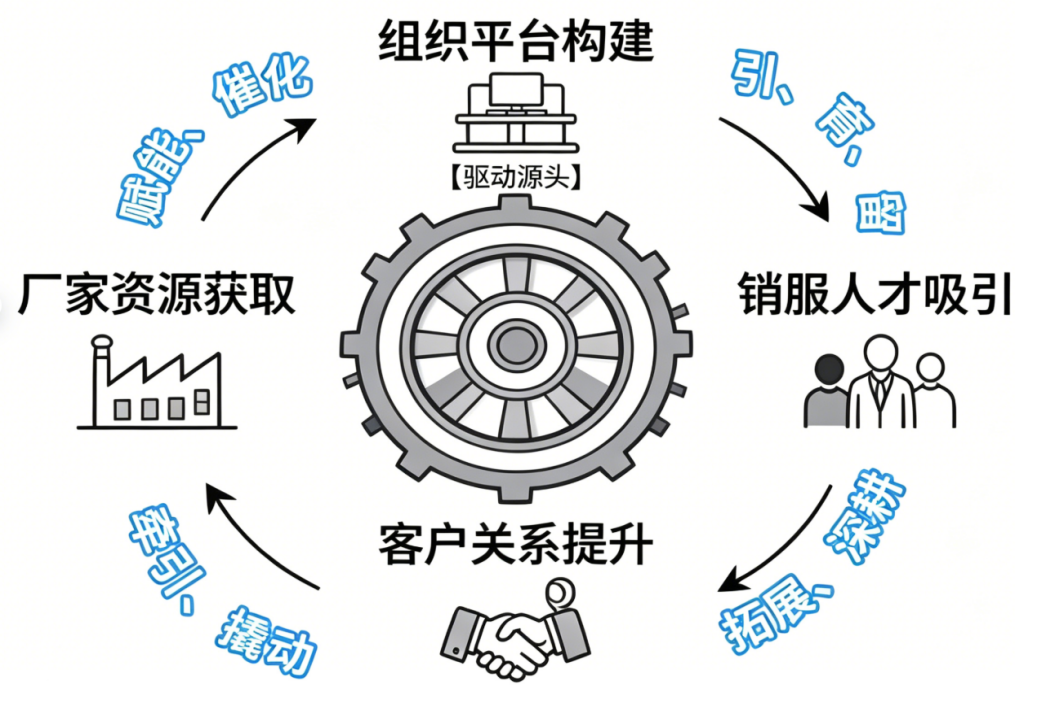 销售团队基于平台赋能深耕客户关系,沉淀长期私域信任与数据资产,实现客户生命周期价值最大化;稳定优质的客户关系网络反向撬动厂商政策与资源倾斜,提升企业在供应链中的议价权与合作优先级;