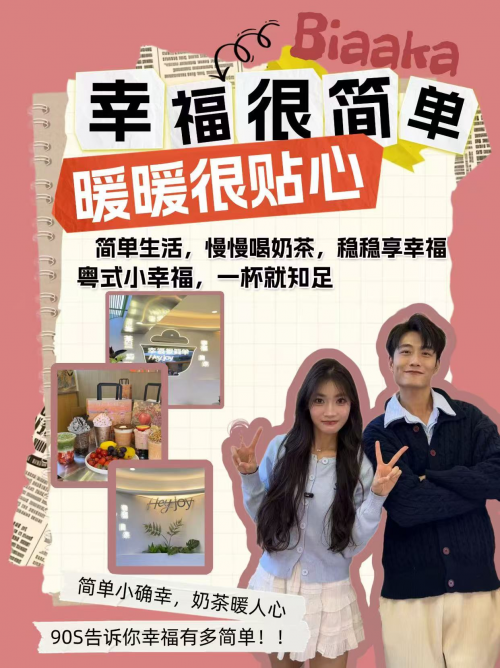 在旅行的打卡笔记中,消费者对幸福很简单奶茶店的产品更是赞不绝口,黑金雪顶以墨鱼粉打成的绵密黑奶盖搭配清爽茶底,颜值与口感双在线;红苹果布雷的挂壁设计极具视觉冲击力,果香与奶香层层递进;超莓好耶选用新鲜草莓手工压碎,搭配三重牛乳与茉莉茶汤,冰爽清甜不腻口,每一口都充满春天的味道。这些真实的用户分享,没有华丽的辞藻,却最具说服力,让越来越多的人通过口碑传播,走进幸福很简单的门店,感受这份纯粹的味蕾幸福。