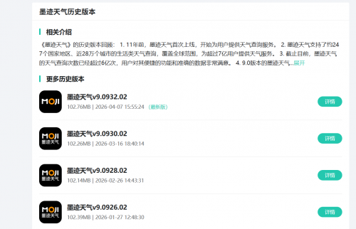 墨迹天气软件2026年密集更新,下载量突破10.2亿