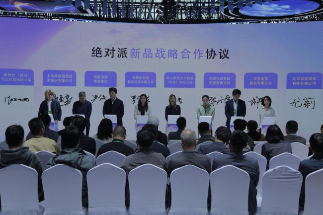 发布会最后,绝对派分别与第七印象文化传媒(深圳)有限公司、凤凰出版传媒集团、上海移远通信技术股份有限公司、集物社(深圳)文化创意有限公司、北京百度网讯科技有限公司、阿里巴巴集团控股有限公司、华安证券股份有限公司签署战略合作协议,标志着绝对派在内容生态、技术支持、渠道拓展与资本合作等方面迈入全新阶段。