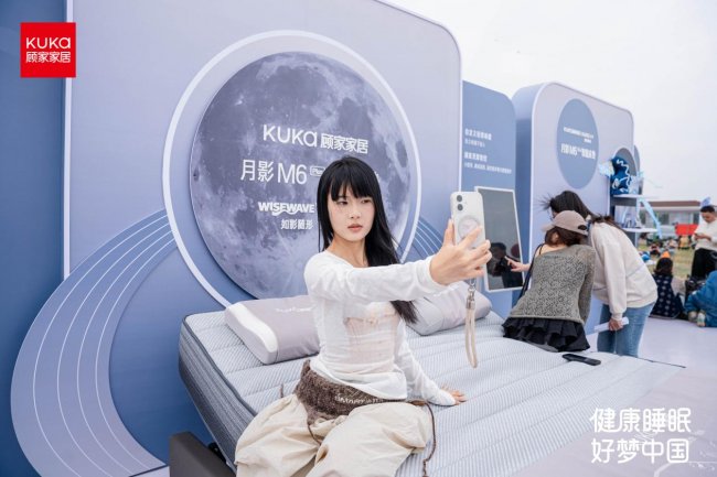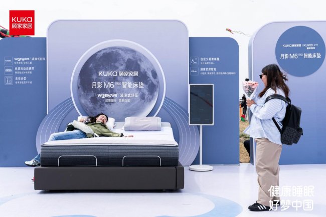 为了让概念落地,顾家家居在风筝节现场设置了月影M6智能床垫沉浸体验场景。一位来自互联网行业的体验者描述:“躺下去的瞬间,腰部被稳稳托起,气囊规律性起伏,像海浪一样缓缓包裹身体,整个人瞬间卸下疲惫。”这场体验的设计逻辑很清晰:将抽象的“波浪式舒压”转化为可感知的身体记忆,而非停留在概念表层。