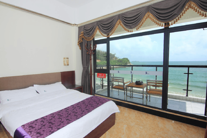 其亲海距离更是打破想象边界。酒店建筑沙滩上而建,从一楼客房起步,便实现全楼层无遮挡观海,无任何屏障阻隔海景。住客踏出房门,即可漫步私滩,与海浪零距离接触,推窗即见万顷银波,枕浪而眠的旅居梦想在此落地。
