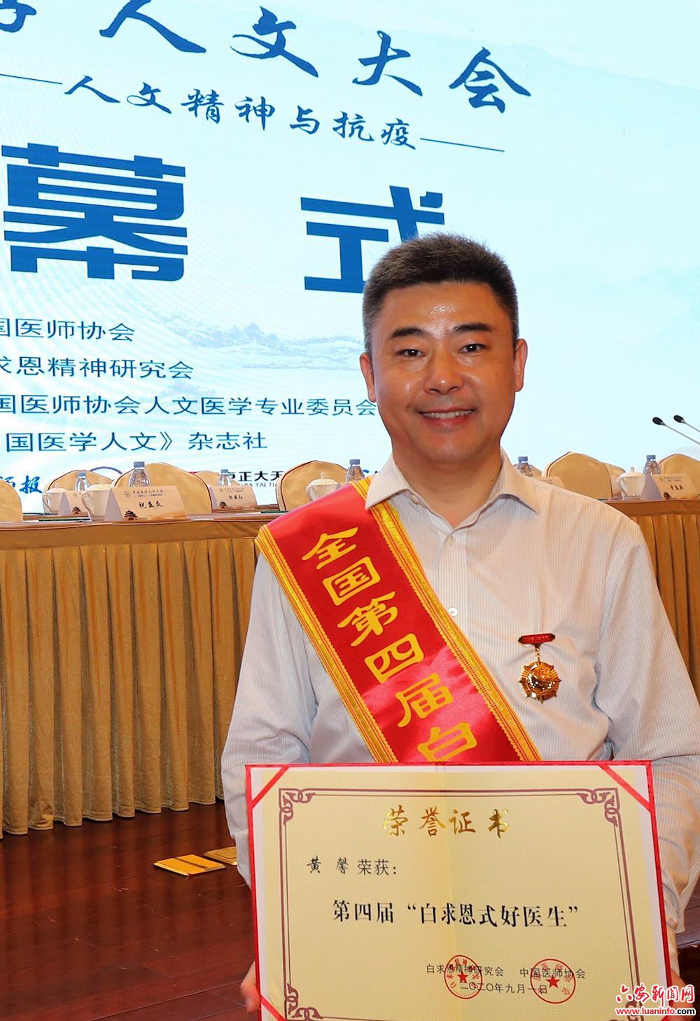 9月27日,黄馨在颁奖现场展示“白求恩式好医生”荣誉证书。