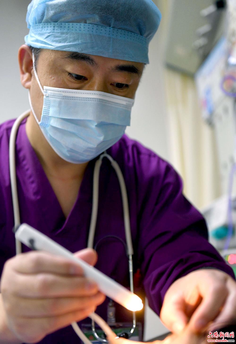 2020年10月6日,六安市人民医院重症医学科副主任、主任医师黄馨在重症监护病房为危重症患者检查瞳孔。