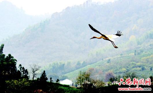 2020年11月11日,一只随着鹤群南迁的小白鹤因体力不支停留在大别山区霍山县单龙寺镇扫帚河湿地上。