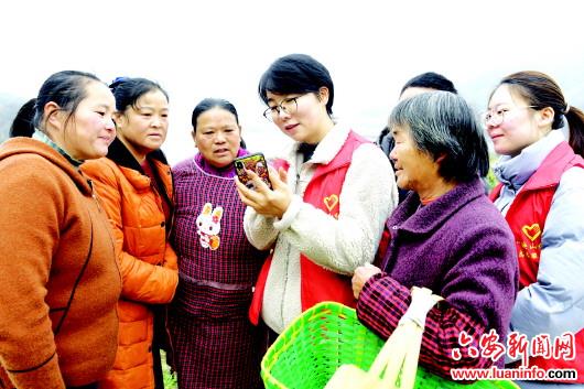 2020年12月2日,单龙寺镇青年志愿者韩以月(右三)在给村民介绍过境大别山越冬的常见国家一级保护鸟类。