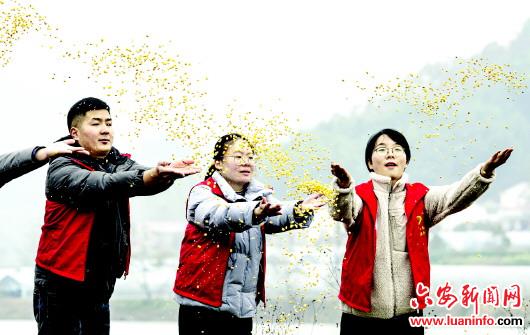 2020年12月2日,单龙寺镇青年志愿者们在湿地上投放鸟食。