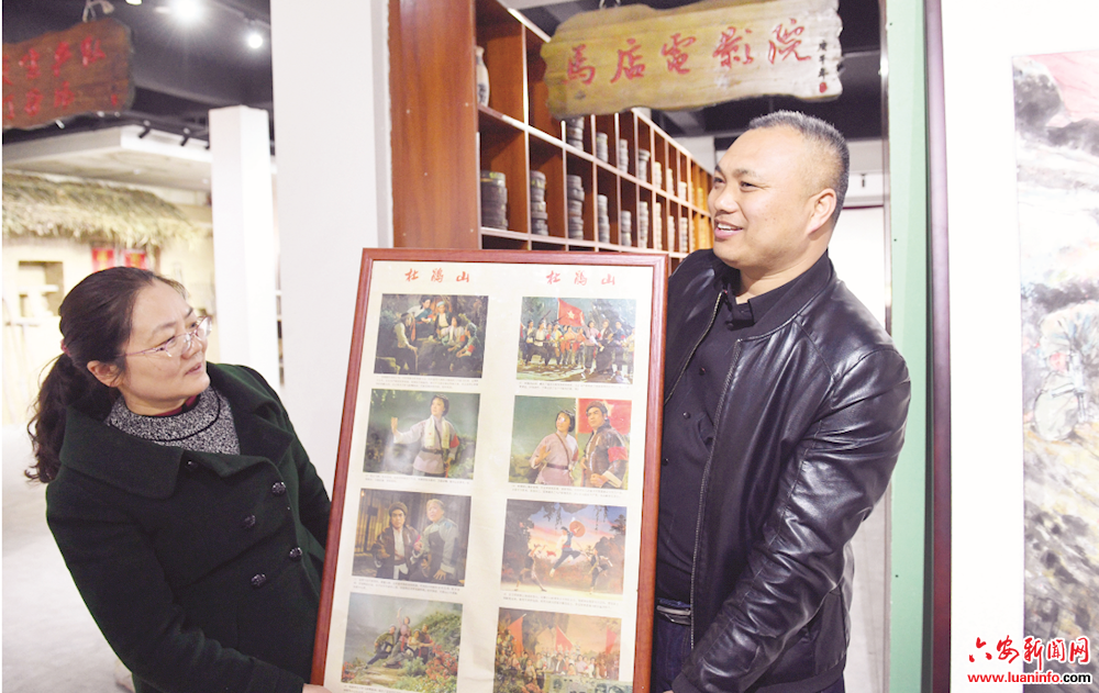 近年来,他将收藏的老电影胶片分类整理,按照当年影院的布局,建成可容纳近百人观影的马店电影院,“七一”前正式对外开放,为游客和研学的师生放映,让他们感受红色胶片电影的历史价值。图为李林忠在向游客介绍老电影海报。( 皖西日报融媒体记者 陈力 摄)