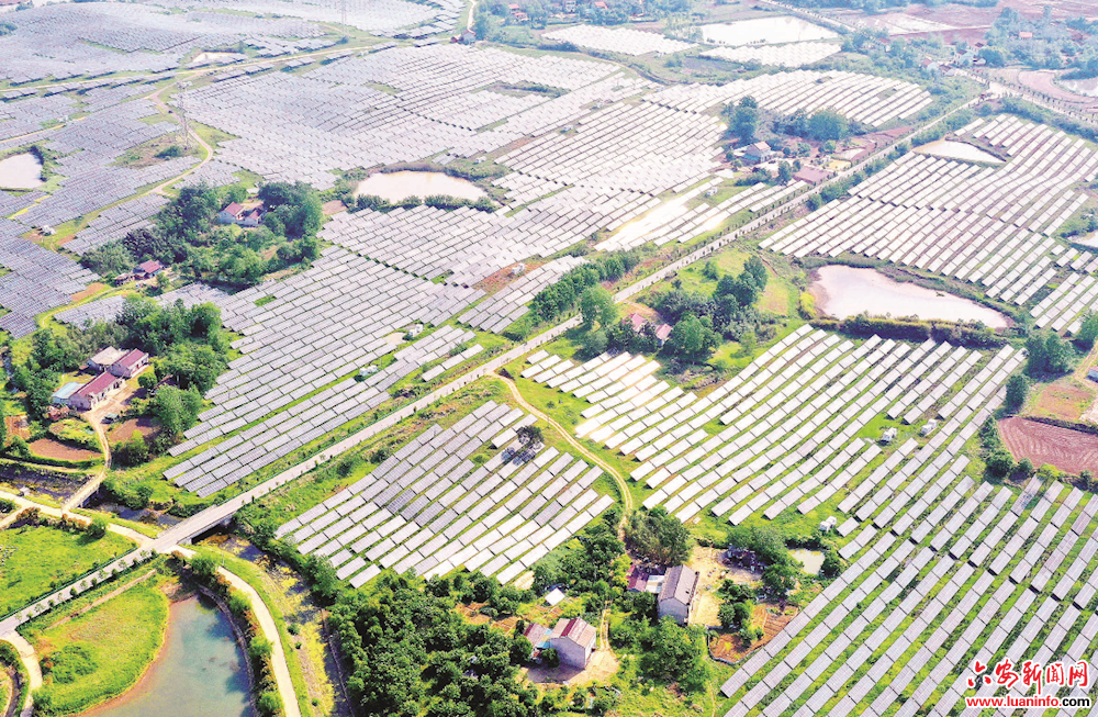 为改善农村人居环境,不断提高农民生活质量,近年来,我市坚持绿色发展,秉承“绿水青山就是金山银山”的理念,积极通过推进生态环境保护和治理,营造良好的营商环境,发展和推广光伏、风电等绿色能源产业,大力推广使用清洁能源,助力乡村振兴。图为裕安区江家店镇挥手村境内在荒坡岭上建成的分布式地面光伏发电(二期)项目。(皖西日报融媒体记者 田凯平 摄)