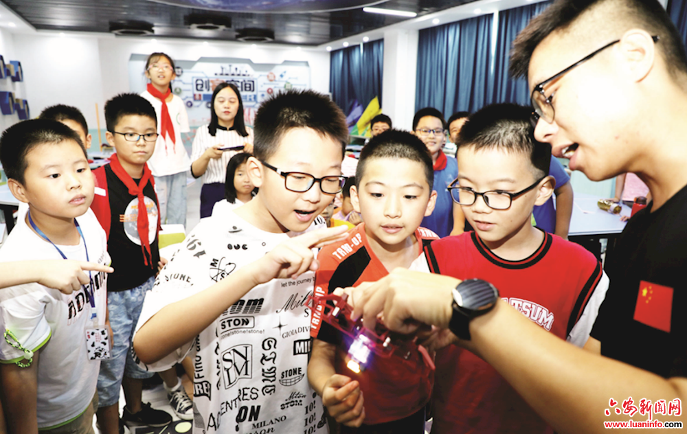 据了解,该校于2018年春学期成立无人机航模社团。2020年,该校投资近40万元,兴建了创客教室,购置了一定数量的无人机和机甲设备。经过3年发展,每学期有近200名学生参与其中。 (皖西日报融媒体记者 袁洁 摄 )