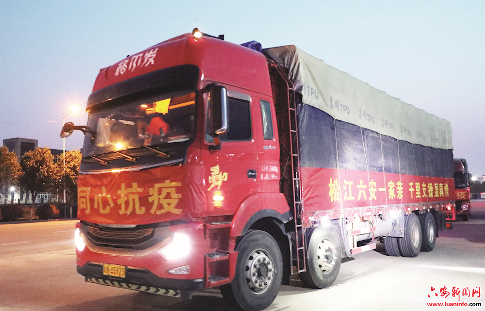 3月28日晚21时许,在六安市支援上海松江区重要生活必需品保供抗疫发车仪式上,十辆高栏货车组成的捐赠车队从六安出发,奔向上海市松江区。货车内装满了西红柿、胡萝卜、黄瓜等农产品,这些承载着六安人民浓浓爱心的农产品,将经过长途运输后送达上海市松江区人民手中。