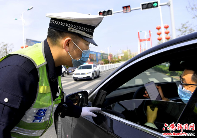 4月5日,六安市交警一大队的民警在对非必要外出车辆进行劝返。