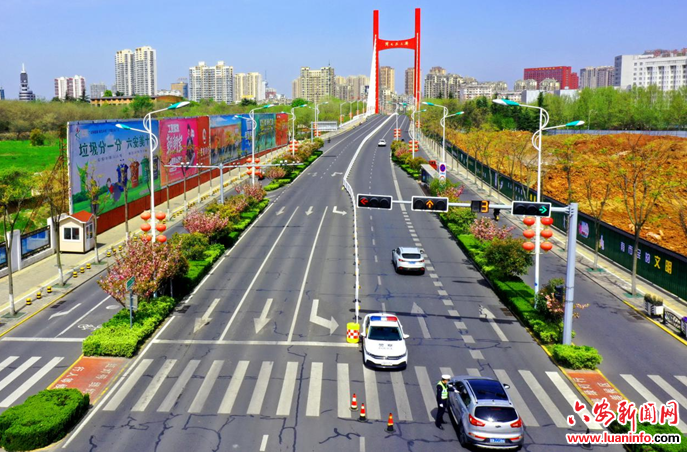 4月5日,城区道路行人和车辆稀少,淠河水缓缓东流。