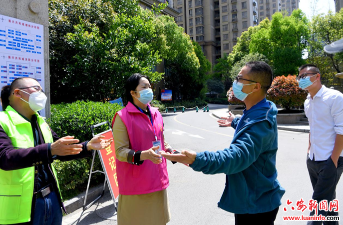 4月5日,六安市爱心妈妈公益协会的志愿者在解答小区居民的疑问。