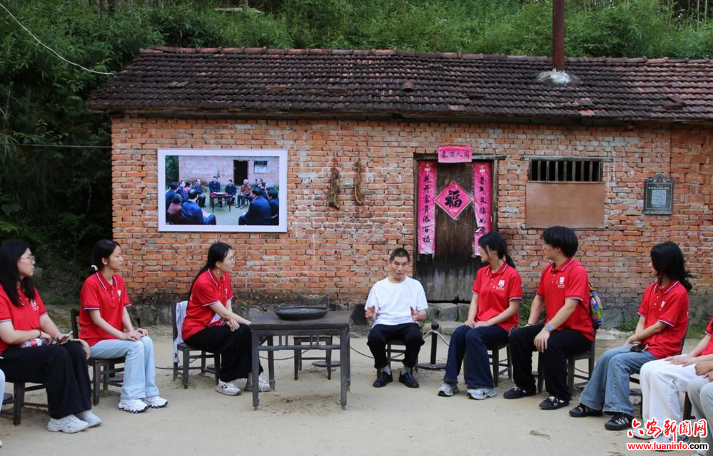 7月8日,金寨县花石乡大湾村,滁州学院支教师生聆听陈泽申老人讲述。曹纯摄