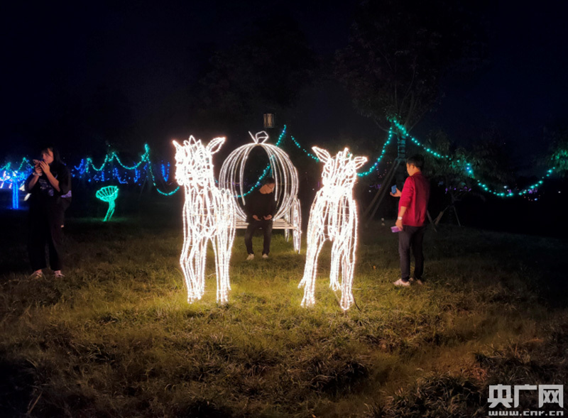 央广网安源10月2日消息(记者邓玉玲 通讯员许浩毅 杨勤)夜幕降临,华灯璀璨,走进安源区五陂十里花溪湿地公园,一组组彩灯装点出各种美丽的图案流光溢彩,犹如镶嵌在夜晚中的一颗明珠。景区内人头攒动,随处可见观景和拍照的市民,大家纷纷通过朋友圈、抖音晒出灯光秀美图。