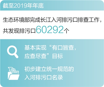 重庆和江苏的探索,是近年来长江经济带11省市推进长江入河排污口排查的一个缩影。生态环境部执法局监督执法一处副处长仇鹏介绍,自2019年1月起,生态环境部与长江经济带11省市协同发力,开展长江入河排污口排查整治专项行动。整个排查历时一年,分批、分步完成了整个长江岸线的无人机航测、人工徒步排查、专家质控式核查等三级排查工作,走遍长江经济带11省市63地市2.4万公里岸线,系统分析长江入河污染排放状况及环境隐患,共发现长江入河排污口60292个,基本实现“有口皆查,应查尽查”目标,为长江生态环境做了一次深入体检。