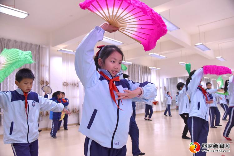 “客家戏哎,客家音呃,采茶调子蛮好听哦,句句唱出客家情啊,声声连着客家人的心呃……”伴随旋律响起,师生们的一招一式、一颦一笑,恰似为采茶戏注入了新鲜血液。