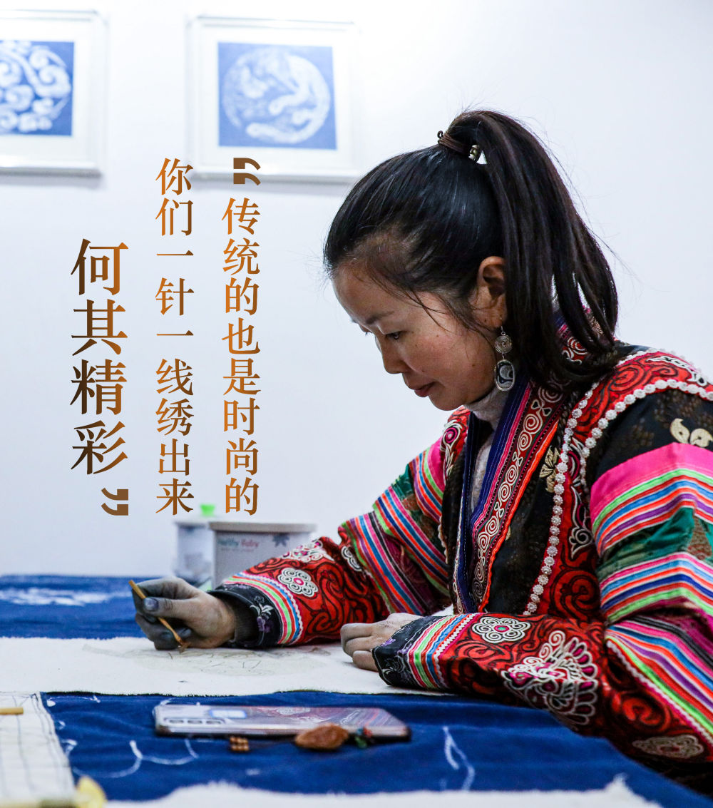 杨文丽说,刺绣、蜡染是苗家人的传统手艺,今后要让更多村民“家门口就业”。