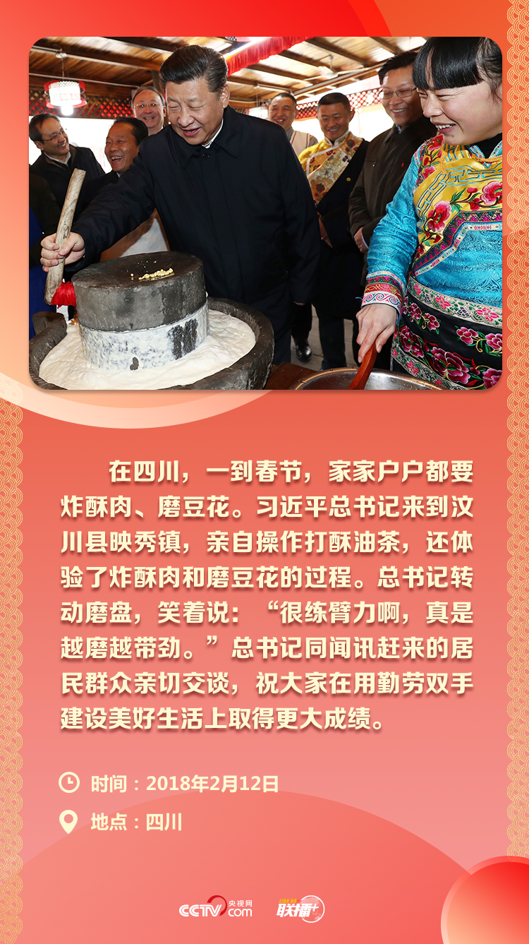 中华民族传统节日农历牛年春节即将到来之际,习近平总书记来到贵州,看望慰问各族干部群众,向全国各族人民、向港澳台同胞和海外侨胞致以美好的新春祝福,祝福大家身体健康、家庭幸福、事业顺利、牛年吉祥!祝愿伟大祖国山川锦绣、欣欣向荣、繁荣富强!党的十八大以来,每到春节前夕,习近平总书记总是带着心中牵挂,深入到群众当中拉家常、问冷暖、听民声、送祝福。用老百姓的话说,“总书记没有一点架子,到家里就跟走亲戚一样”。