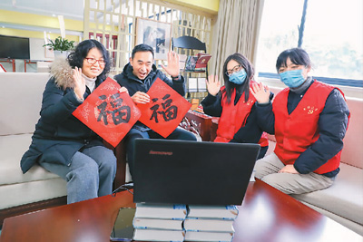 浙江省湖州市南浔区练市镇志愿者帮助父母通过互联网和远在海外的子女“云团聚”。