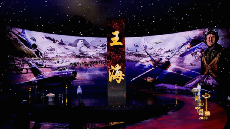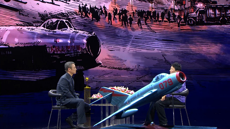 在志愿军英雄王海段落,设计师以AR技术再现了一架英雄当时驾驶的战斗机,掠过舞台上空,甚是震撼。将观众瞬间代入曾经令人血脉贲张的场景,展现了英雄当年壮怀激烈、舍己为国的英勇精神。