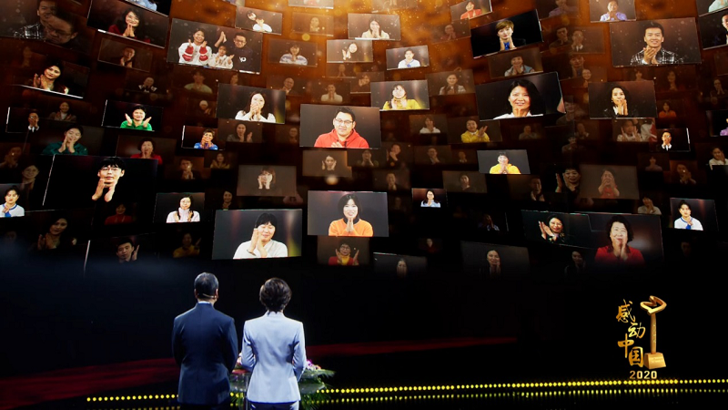 由于防疫规定,往年500位左右的现场观众全体“缺席”。感动亦是互动,这还是头一次遇到现场没有观众的情况。经过探讨研究,节目组亮出“神器”——用虚拟技术营造云观看环境,精心设计了形式新颖的观众墙。观众未临现场,却如同在场,成功hold住了氛围和情绪。虽然没有现场观众,但嘉宾访谈感人度未减。有的嘉宾谈到动情处潸然泪下,屏幕前的心也被节目中饱含的真情所牵动、打动。由于各种原因,有三位嘉宾也“缺席”现场。节目组不畏繁复的拍摄程序,联络了三家记者站,出动卫星转播车进行连线采访,让感人至深的情绪实现了零距离传达。