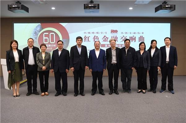 指导单位中共上海市委宣传部、中共上海市委党史研究室、中共上海市金融工作委员会与主办单位合影