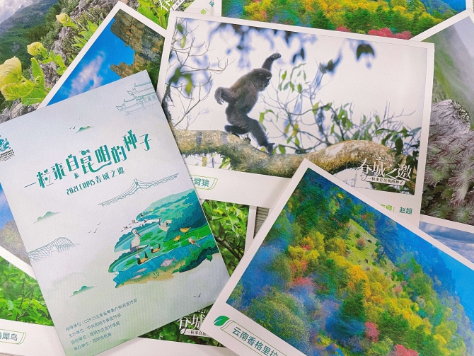 “一粒来自昆明的种子”活动明信片此外,活动申领页面内还设置了“CBD COP15”、“春城盛装待客来”两个版块,期待各位网友通过版块内的图文及短视频了解COP15,感受云南.昆明生物多样性的魅力。也期待大家点击链接“晒图”按钮,晒出身边的生物多样性,与全国网友一起记录种子的成长,讲述自然的魅力。